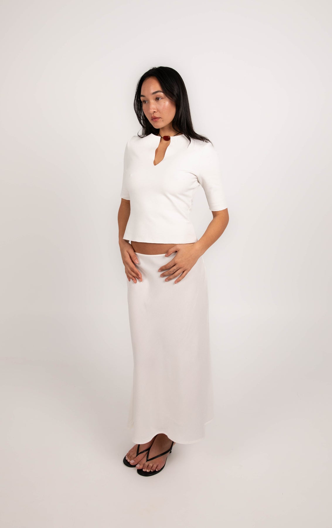 Made in Australia from 100% rayon, the Valentina Skirt offers a lightweight, breathable feel perfect for every season.Its versatile silhouette effortlessly transitions from day to night. Styled on Rosie in a size 8.